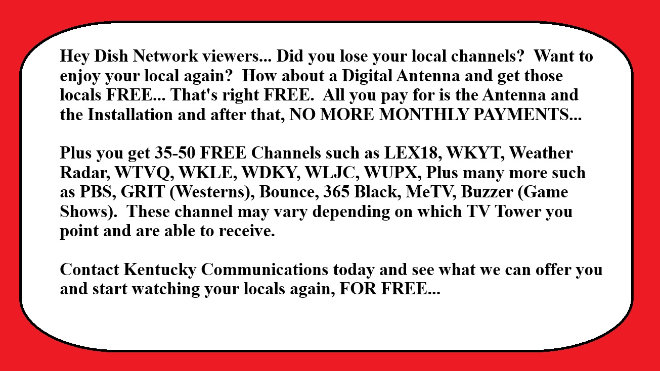 HEY LEXINGTON KENTUCKY DISH NETWORK SATELLITE CUSTOMERS